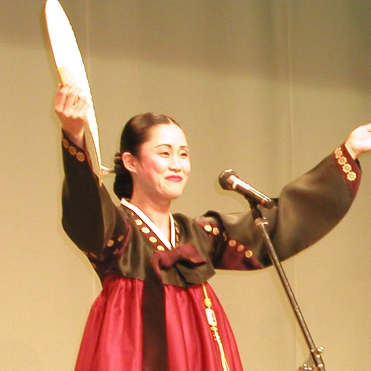また、人間文化財第5号指定の南海星(水宮歌)に師事し、パンソリ(歌唱劇)を習う。
