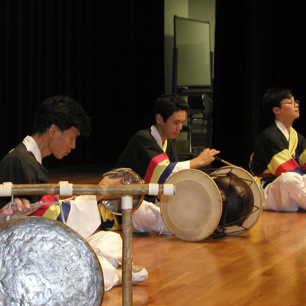 そして、日頃の練習の成果を発表すべく、伝統文化の公演活動を行っています。ショッピングセンターの秋祭り、教育委員会主催の人権集会、小中学校の文化鑑賞、結婚式や記念パーティーなど、公演の場はさまざまです。 「マダン」とは広場という意味。文字通り、伝統文化に惹かれた在日が自由に集える広場、それがマダンです。